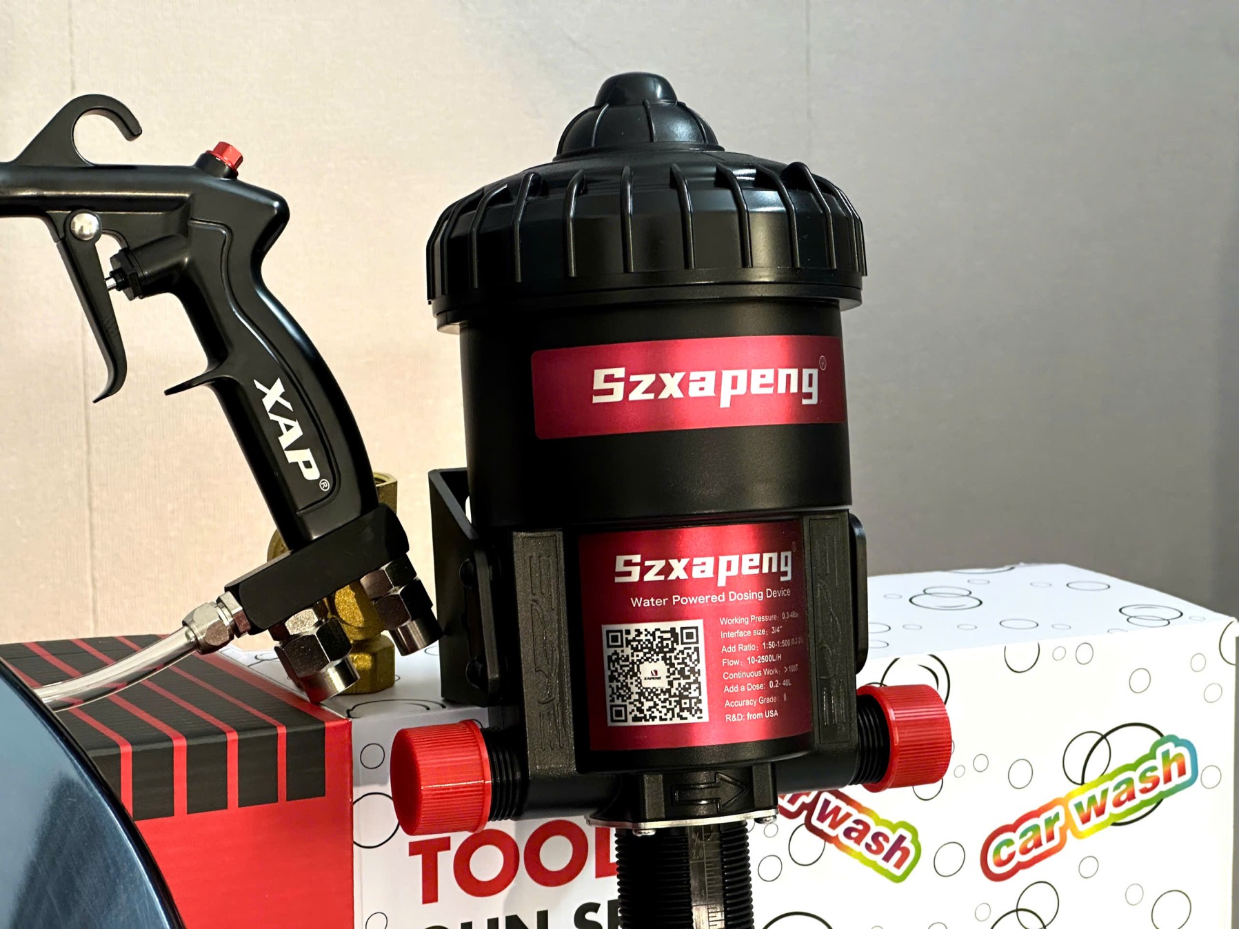 Máy pha dung dịch Szxapeng là thiết bị pha trộn hóa chất tự động hoạt động bằng áp lực nước, giúp định lượng chính xác và ổn định trong quá trình sử dụng. Sản phẩm phù hợp cho rửa xe, chăm sóc xe, vệ sinh công nghiệp, nông nghiệp và nhiều ứng dụng khác cần pha hóa chất theo tỉ lệ chuẩn.